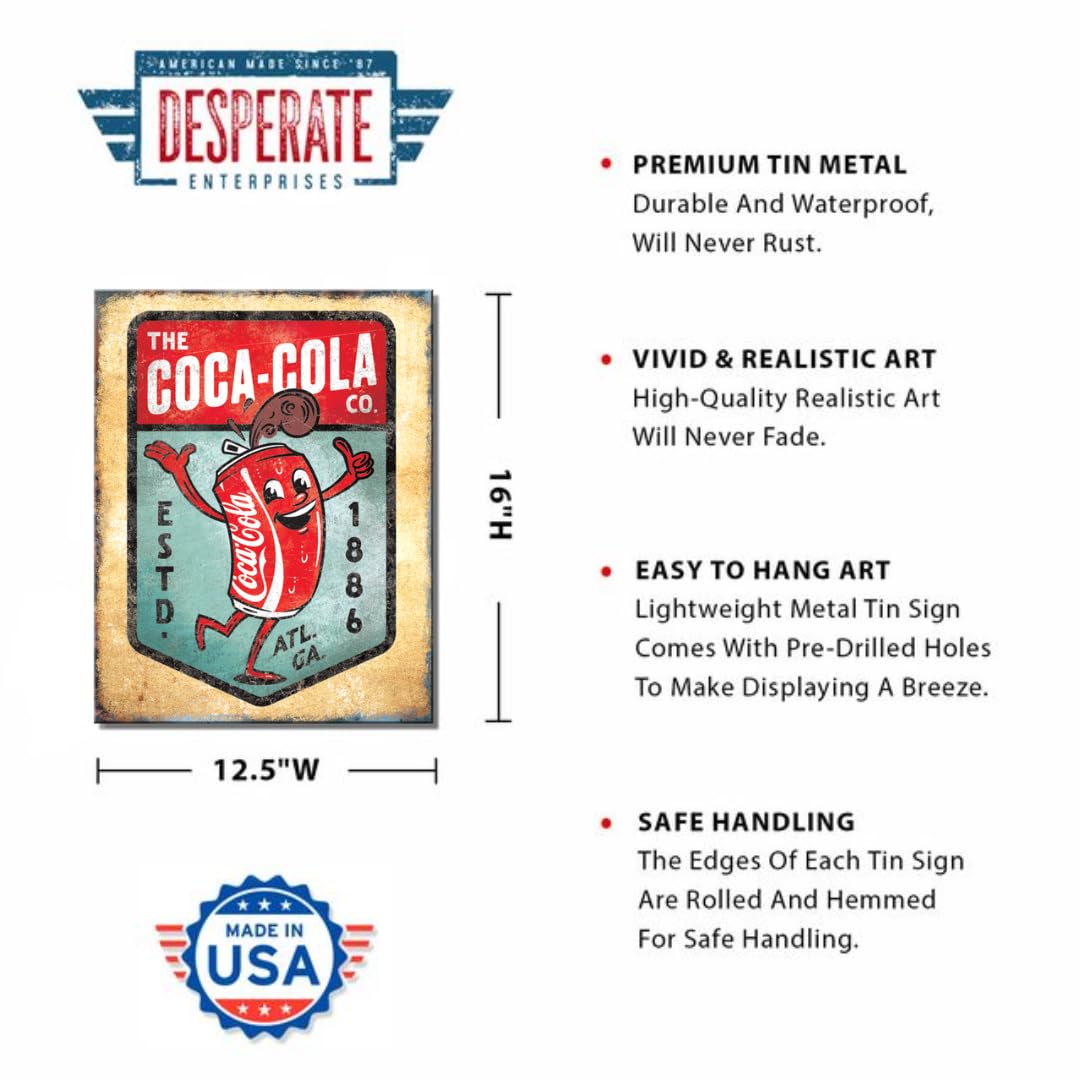 Desperate Enterprises Coca Cola Dancing Can Tin Sign – Vintage Coca Cola Merchandise and Gifts – Nostalgic Vintage Metal Signs – Made in the USA