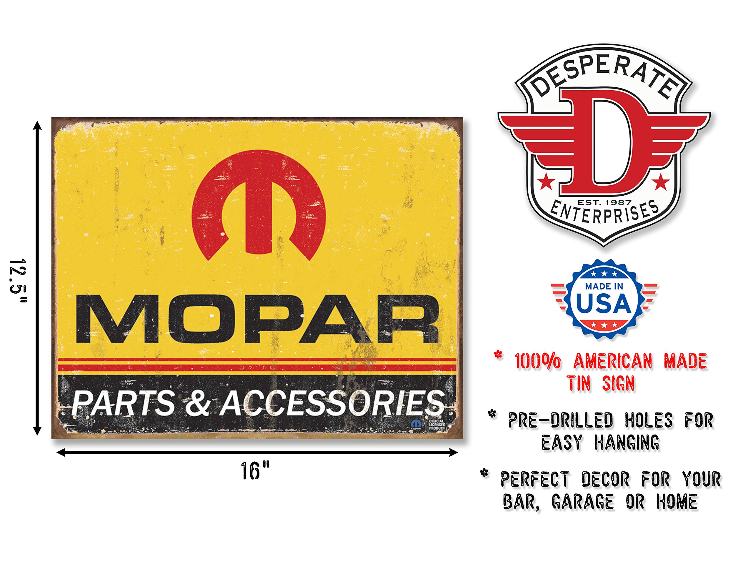 Desperate Enterprises Mopar Logo ’64 – ’71 Tin Sign, 16″ W x 12.5″ H