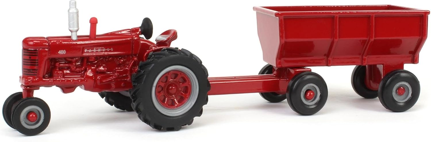 1/64 Farmall 400 Narrow Front Tractor with Flarebox Wagon, Diecast Metal, Soft-feel Tires, Ages 3+
