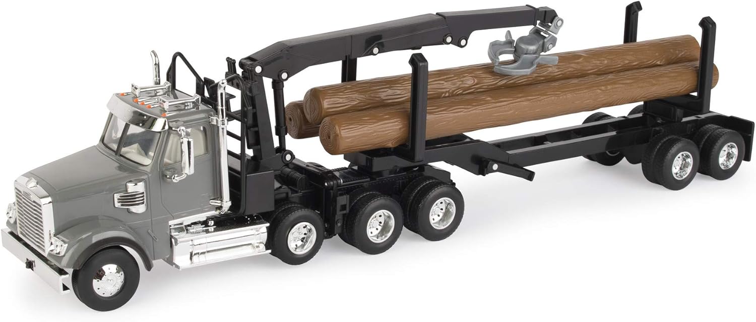 Freightliner 122SD Logging Truck Toy – 1:32 Scale – Includes Toy Truck, Trailer, and 3 Logs