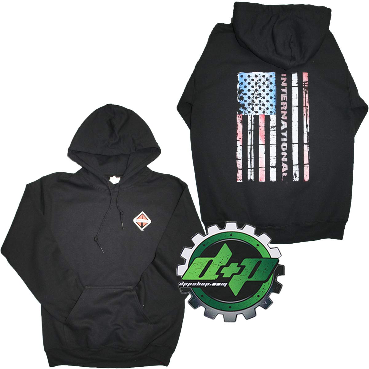 International Black Sweatshirt Sweat Shirt Hoodie Truck Diesel American Flag SM