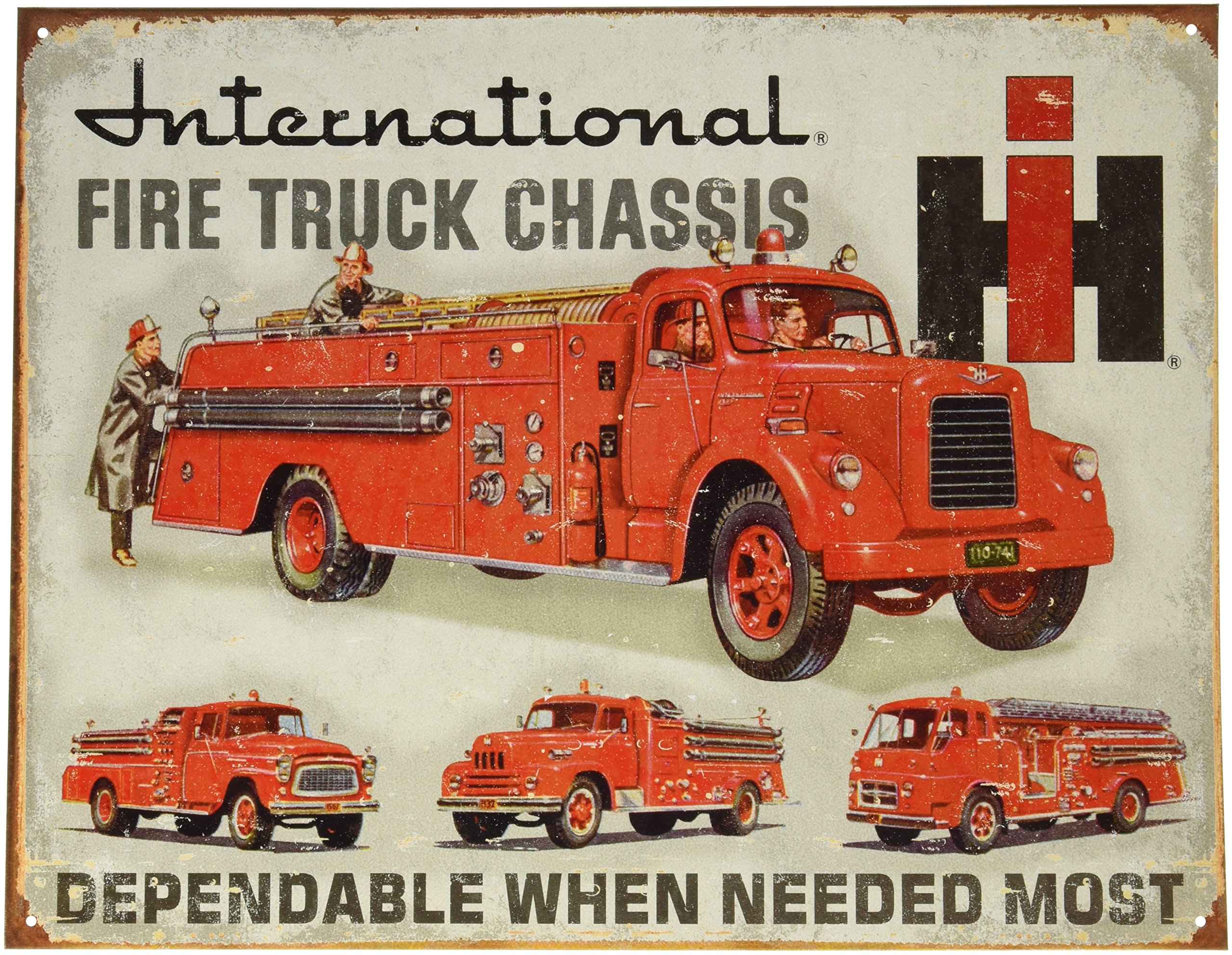 Desperate Enterprises International Fire Truck Chassis Tin Sign 16 x 12in