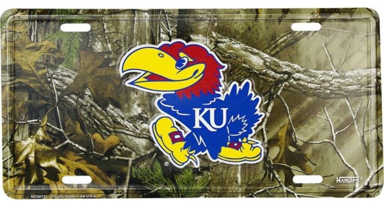 KANSAS UNIVERSITY CAR TRUCK TAG CAMO LICENSE PLATE KANSAS JAYHAWKS METAL SIGN