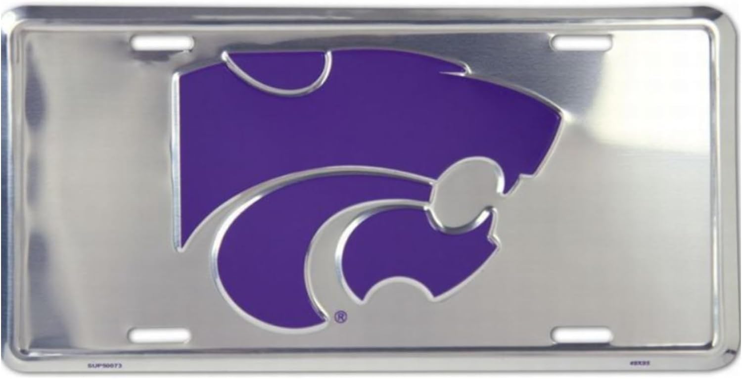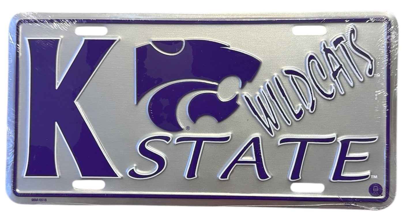 Kansas State Wildcats License Plate, Purple and Silver, Metal, Embossed Design
