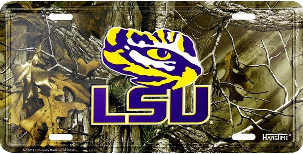 LSU Tigers CAMO Metal License Plate Tag Louisiana State University 6 X 12