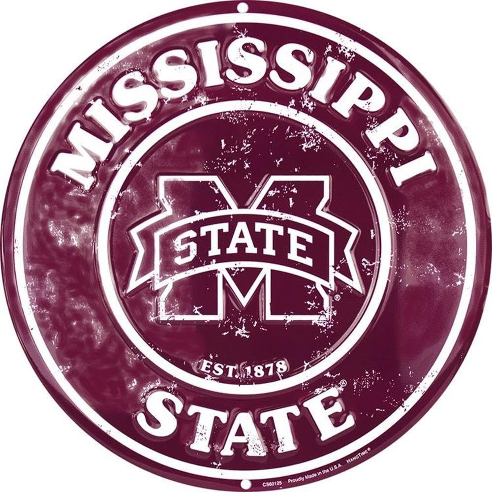 MISSISSIPPI STATE UNIVERSITY 12″ ROUND METAL BULLDOGS MAN CAVE SPORTS ROOM SIGN