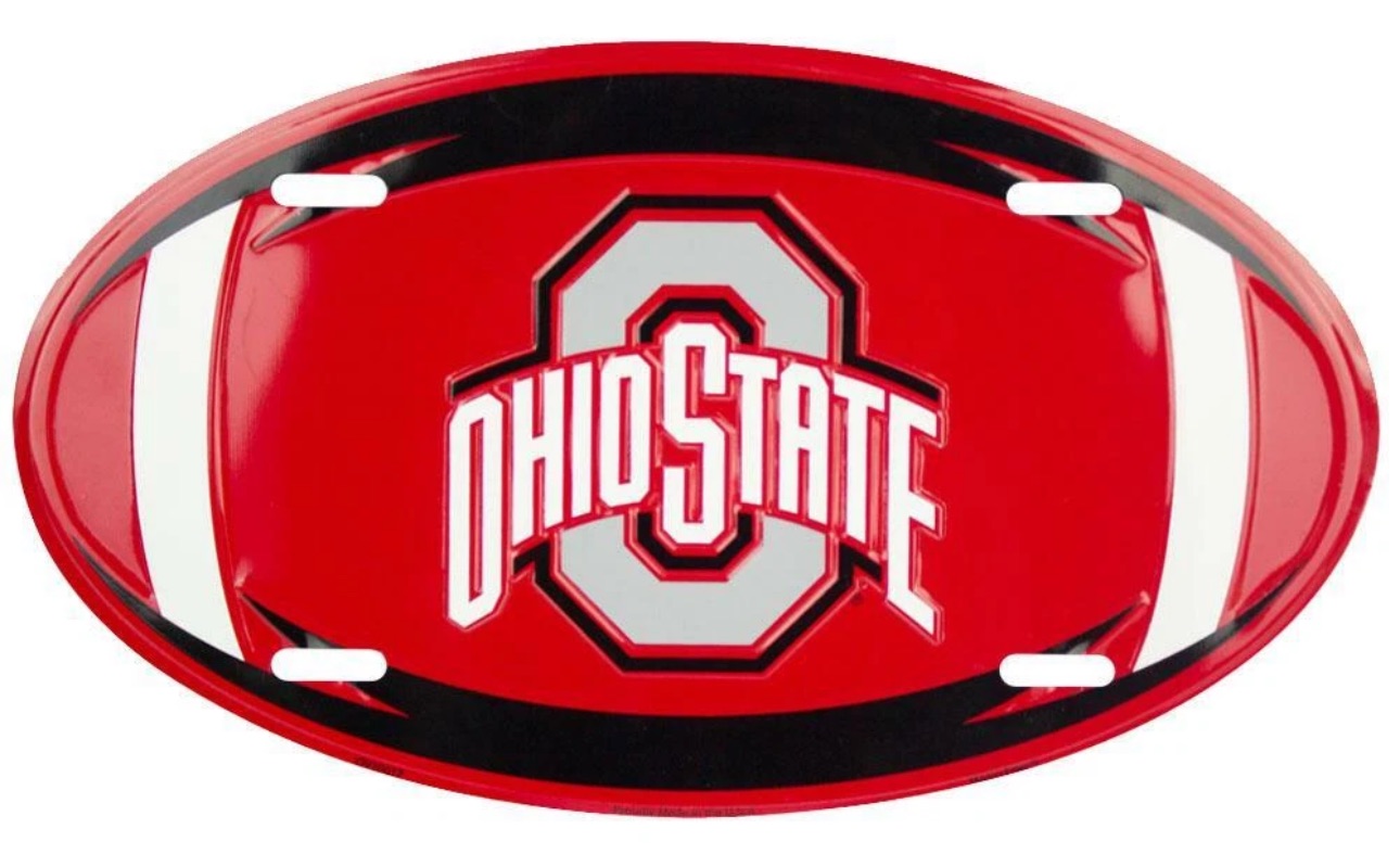 OHIO STATE BUCKEYES CAR TRUCK TAG OVAL FOOTBALL LICENSE PLATE METAL SIGN