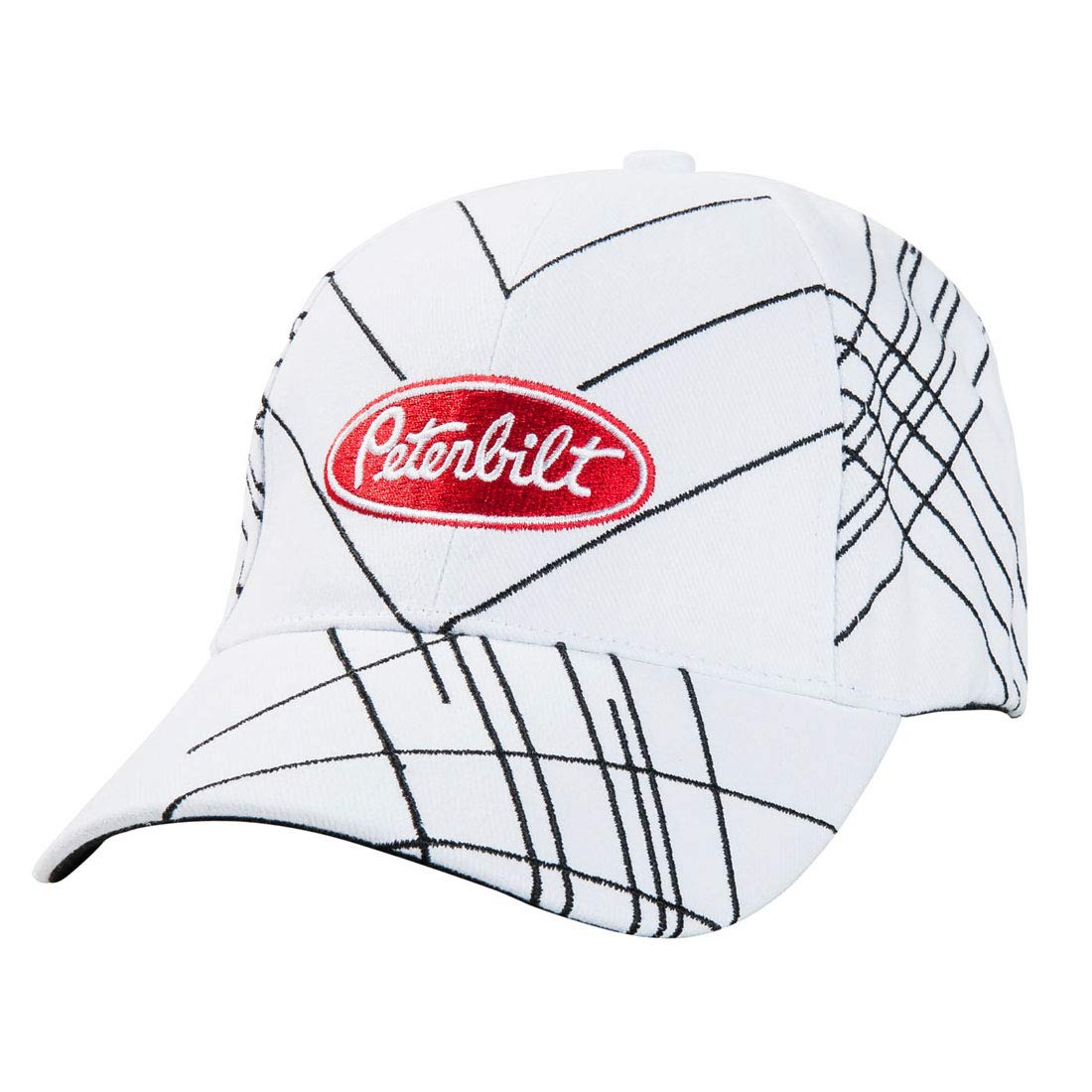 Slick iridescent stripes give this cap a futuristic vibe and eye-popping presence. Features a shaped, structured peak; contrast undervisor; and adjustable closure. Color: Gray Decoration: Embroidered Peterbilt text and woven-loop label Material: Recycled polyester