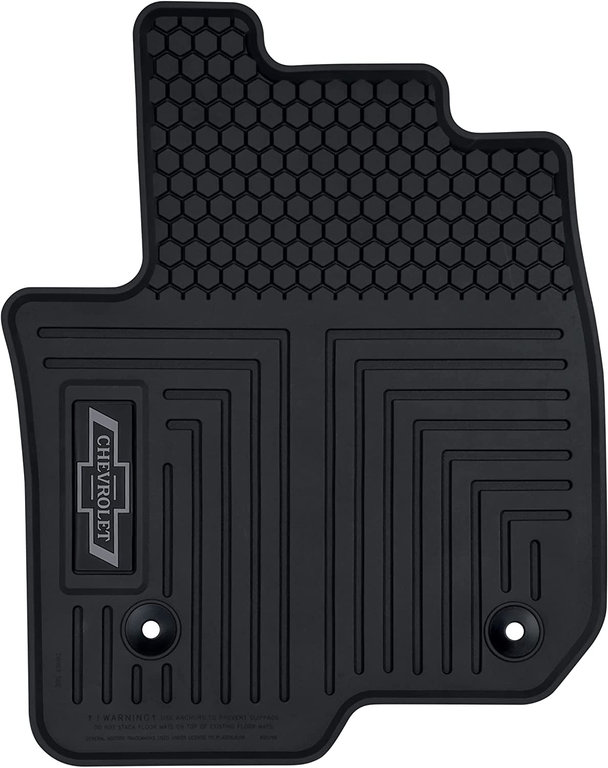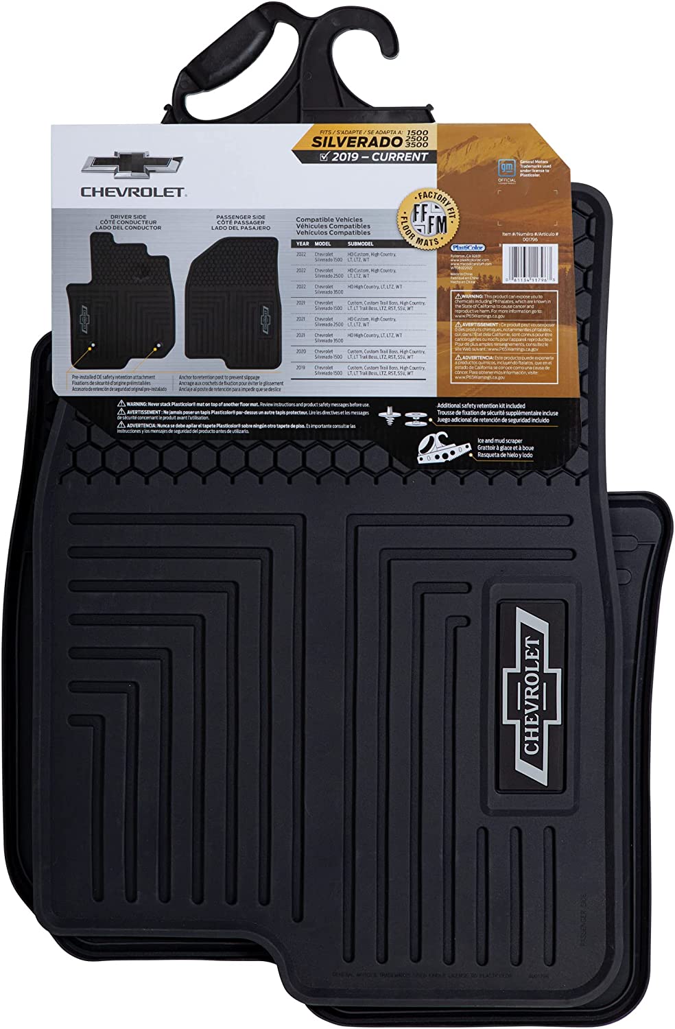 This Listing is for One (1) Set of Driver and Passenger side Chevrolet Silverado Front Vehicle Floor Mats. This Floor Mat is specifically designed to fit Chevrolet Silverado Front Seat Floors for a wide variety of Silverado Models including the 1500, 2500 and 3500 High Country all built between 2019-2023. Plasticolor’s design adds customized style to any vehicle while protecting the vehicle’s original floor interior. Made of durable, easy to clean material with incredible graphics, giving a bold and cool look that’s sure to make your floor mats stand out on the road. All detailing is poured into the actual mold during the manufacturing process so it will not peel or fade over time. Officially Licensed by Chevrolet. Plasticolor’s Chevrolet Silverado Designed Floor Mats will have your vehicle feeling fun, sporty, classy, and fashionable everywhere you drive your vehicle. Each mat has a built-in anchoring system (included) to hold the mat in place. Do not stack on top of any existing floor mats. Due to being packaged compactly, please lay flat in the warm sun for a while before installation, the mats will gradually flatten out.
